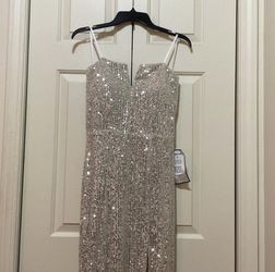 Silver Shimmery Strapless Gown with Slit$85Teaneck, NJ