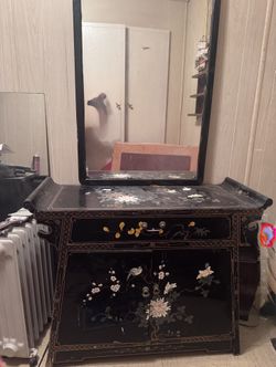 BEAUTIFUL Antique Asian Black Lacquer And Soapstone Inlayed Vanity Drawer And Cabinet Furniture Piece $130Apache Junction, AZ