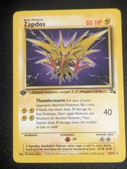 Pokemon Card - Zapdos Fossil 1st Edition 30/62 NM Vintage$20Lake Elsinore, CA