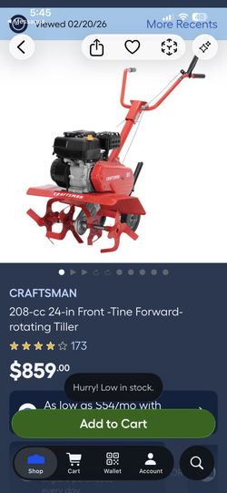 CRAFTSMAN 208-cc 24-in Front -Tine Forward-rotating Tiller$350Alta Loma, CA