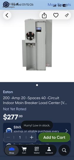 Eaton 200 -Amp 20 -Spaces 40 -Circuit Indoor Main Breaker Load Center$150Alta Loma, CA