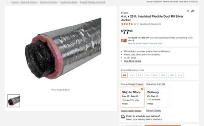 2x Everbilt 4 in. x 25 ft. Insulated Flexible Duct R8 Silver Jacket$45Alta Loma, CA