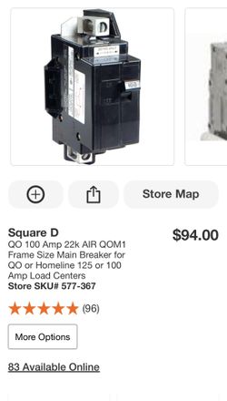 4x Square D QO 100 Amp 22k AIR QOM1 Frame Size Main Breaker for QO or Homeline 125 or 100 Amp Load Centers$155Alta Loma, CA