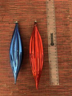 Vtg Pair Ribbed Blown Glass Fluted Teardrop Christmas Ornaments Poland$25Portland, OR