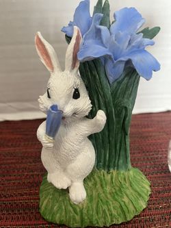 Cute Resin Bunny In Blue Iris Garden Holding Flower$10Portland, OR
