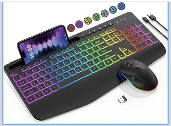 New Wireless Keyboard and Mouse Combo - 9 Backlit Effects, RGB, Ergo Wrist Rest, Phone Holder, 2.4G Full Size, Rechargeable, Sleep Mode$35Spartanburg, SC