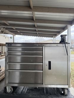 Husky 46 in. 5-Drawer Stainless Steel 1-Door Mobile Work Center with Solid Wood Top$385Warren Park, IN
