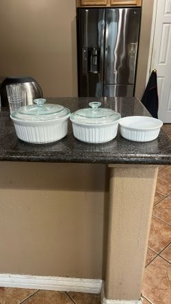6 Piece Corningware French White Caseesrol 2.3L /1.4L/708mL Set With Lid Microwave And Oven Safe$50Jurupa Valley, CA