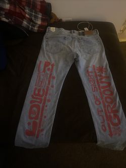 Levi's 501 Original Fit Men's Jeans Painted 'Crazy Leg Love' 60's Print$30Chicago, IL