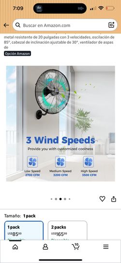 COSTWAY Ventilador de montaje en pared, ventilador de pared de metal resistente de 20 pulgadas con 3 velocidades, oscilación de 85°, cabezal de inclin$40San Jose, CA