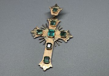 VINTAGE 18K Yellow Gold & Natural Green Emerald Cross Charm Pendantâ¸$775Goodlettsvlle, TN