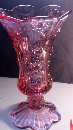 Vintage Fenton Cabbage Rose Footed Vase Pink Dust Glass$30Tumwater, WA
