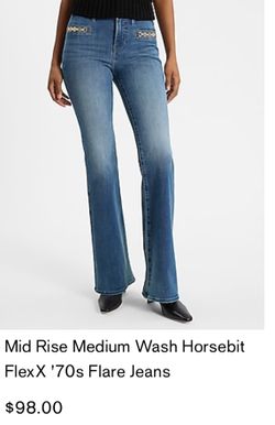 EXPRESS Mid Rise Medium Wash Horsebit FlexX ‘70s Flare Jeans$25Houston, TX