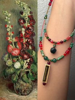 Handmade Beaded Necklace & Bracelet Set – Inspired by Van Gogh’s Vase of Hollyhocks$69Issaquah, WA