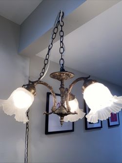 Vintage Victorian French Hanging Lamp 3 Light Ruffle White Frosted Shades$85Glendora, CA