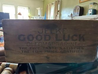 Antique Advertising Wood Crate, 1920s Jelke Good Luck Oleomargarine Butter Wooden Box$55Nineveh, IN