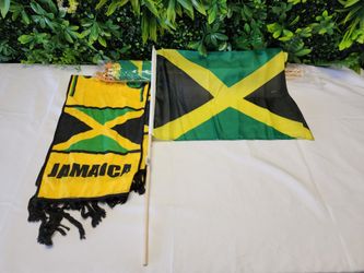Jamaica Flag Set Bundle – Handheld Flag w/ Pole, Jamaica Scarf & 10 Small Stick Flags$20North Las Vegas, NV