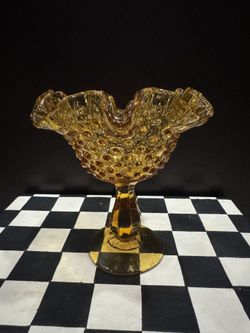 Vintage Fenton Amber Yellow Glass Ruffled Edge Hobnail Compote Candy Dish$20Grand Prairie, TX