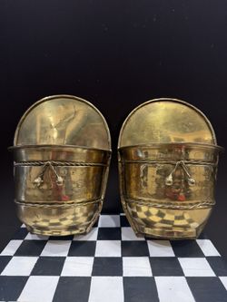 Hammered Brass Wall Pocket Planter Rope Tassel Pattern (2) Made in India $60 for both$60Grand Prairie, TX