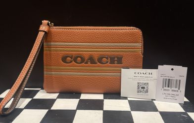Coach Small Pebbled Leather Corner Zip Wristlet with Coach Stripe in the Canyon Multi colorway$40Grand Prairie, TX