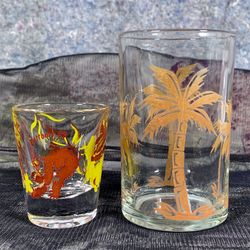 2 x Vintage Glasses Monkey Jungle Bottoms Up Shot Glass Palm Tree Tiki Island$18Newark, CA