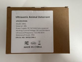 Ultrasonic Animal Deterrent AR51 Solar Powered$20Hialeah Gardens, FL