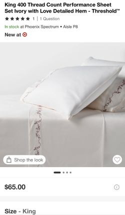 King 400 Thread Count Performance Sheet Set Ivory With Love Detailed Hem$35Phoenix, AZ