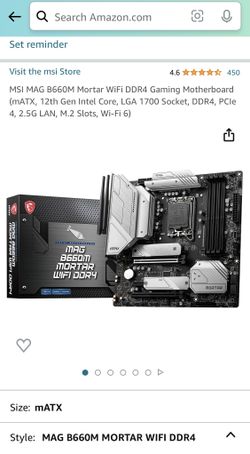MSI MAG B660M Mortar WiFi DDR4 Gaming Motherboard (mATX, 12th Gen Intel Core, LGA 1700 Socket, DDR4, PCIe 4, 2.5G LAN, M.2 Slots, Wi-Fi 6) https://a.$200Bakersfield, CA
