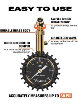 Tire Pressure Gauge - (0-60 PSI) Heavy Duty, Certified ANSI Accurate with Large 2 Inch Easy to Read Glow Dial, Low - High Air Pressure Gauge. Tire Gau$13Clackamas, OR