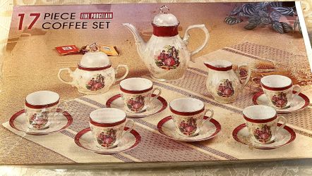 vintage 17 piece COFFEE AND TEA SET Columbia FINE PORCELAIN BURGUNDY TRIM NEW$55Baltimore, MD