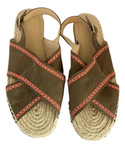 Lands End Womens Size 6 Sandals Brown Suede Ankle Strap Open Toe Espadrille $20Long Beach, CA