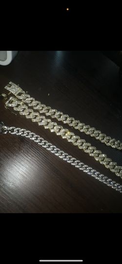 CUBAN GOLD NECKLACE 14 k YELLOW GOLD , SILVER DIAMOND CUBAN ANKLET$2,000Lancaster, CA