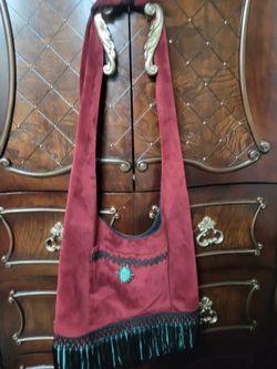 Burgundy suede shoulder bag with turquoise pendant$15Wheaton, IL