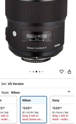 Sigma 50mm F1.4 Art DG HSM Lens for Nikon$700Antioch, CA