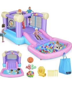Whubefy Inflatable Pink Bounce House for Kids 2-8 with Ball Pit, 161x82x63 All-in-ONE Jump and Slide Water Park w/50 Ocean Balls, 6 Dart Target Balls,$150El Monte, CA