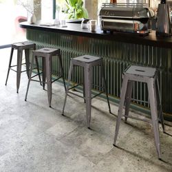 Flash Furniture Commercial-Grade Backless Distressed Indoor/Outdoor Metal Bar Stools, Set Of 4 Bar Stools, Silver$100El Monte, CA
