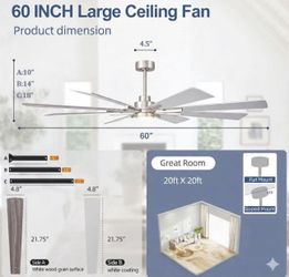60 Inch Large Ceiling Fans, Outdoor/Indoor Modern Ceiling Fan for Patio Bedroom,6 Speed Reversible Quiet DC Motor, Dual Finish 8 Blades, Brushed Nickl$80El Monte, CA
