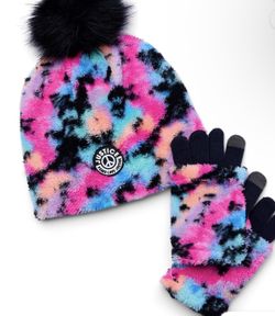 Justice Girls Tie Dye Faux Shearling Beanie and Gloves 2-Piece Set, Multi-Color Black$4Las Vegas, NV