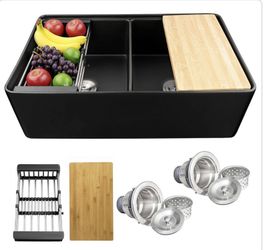 AKDY Black Fireclay 33 in. Double Bowl Apron-Front Workstation Kitchen Sink with Basket Strainer and Cutting Board$199Anaheim, CA