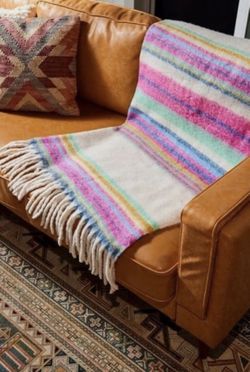 FREE PEOPLE Fringe Throw Blanket Skye Pink Blue White Stripes$30Oceanside, CA