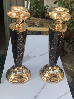 CAPASIN Black and Gold Candle Holders for Pillar Candles Set of 2 Candelabros De Mesa Elegantes Table Large Metal Centerpiece Tall Candlestick Glass T$50Los Angeles, CA