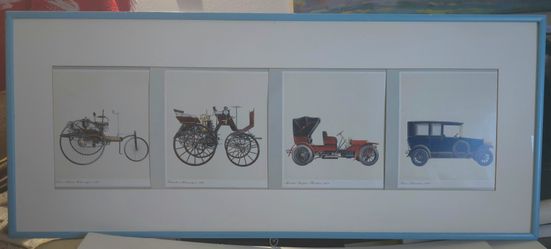 Set Of 4 Beautiful Detailed Prints Of Mercedeses From 1886/1902/1909 Framed 16.5x39"$50Seattle, WA