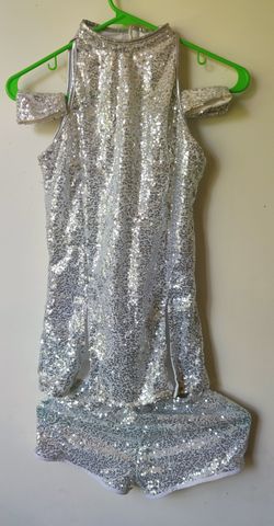 Girls Boys Shiny Sequins Mini Dress Hip-hop Jazz Latin Performance Costumes Street Dance Wear - Silver 8-10