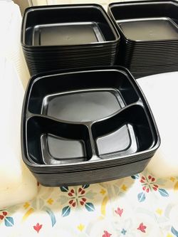 Choice 9" x 9" 3-Compartment Microwaveable Black Mineral-Filled Plastic Hinged Take-Out Container / 50 Case $30Chicago, IL