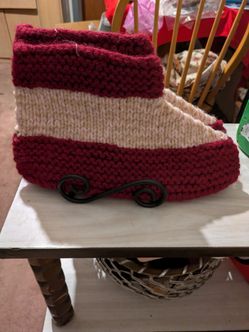 Crochet Hand Made Cuffed Boot Style Slippers. Size Large Red And Pink Color$20Montclair, CA