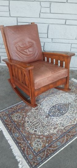 Quality Craftsman Solid Oak Mission Style Rocker Not Antique With Leater Cushions. Persian Rug Also Available$450Marysville, WA