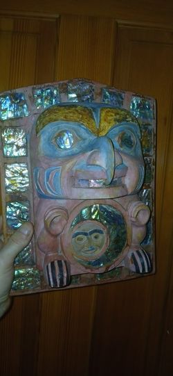 Northwest Coastal NATIVE AMERICAN TRIBAL HEADDRESS FRONTLET PLAUQUE WOOD ABALONE AND PAINT HAND CARVED SIGNED NUMBERED$650Seattle, WA