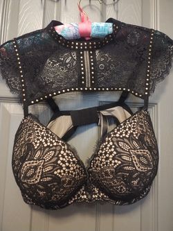 Victoria’s Secret Very Sexy Push Up Bra Gold Stud Lace High Neck Black $12Mcallen, TX