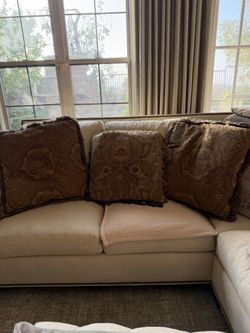 Gold & Brown leaf print decorative print pillow. Pillows stuffed with crushed foam and dacron.$80Irvine, CA