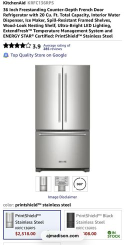 New KitchenAid 36 Inch Freestanding Counter-Depth French Door Refrigerator$1,895Hacienda Heights, CA